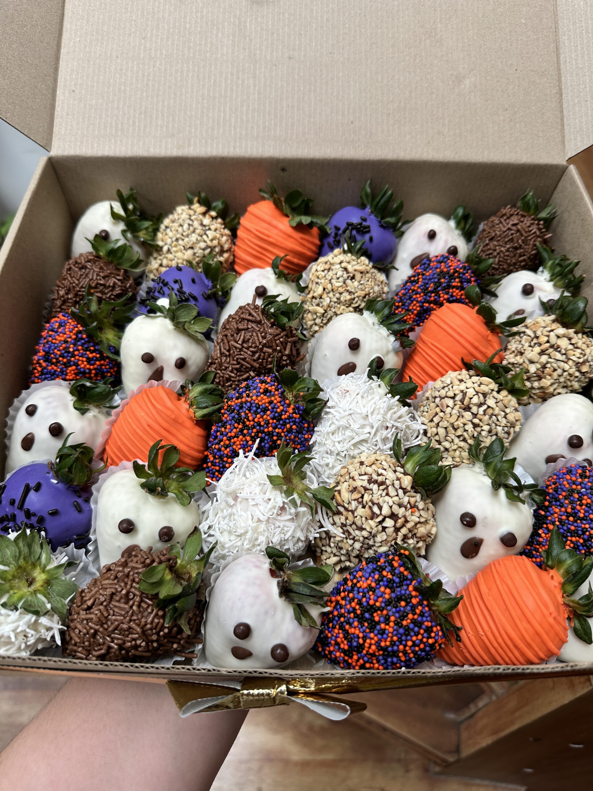 Caja de 36 fresas con chocolate halloween surtidas con maní
